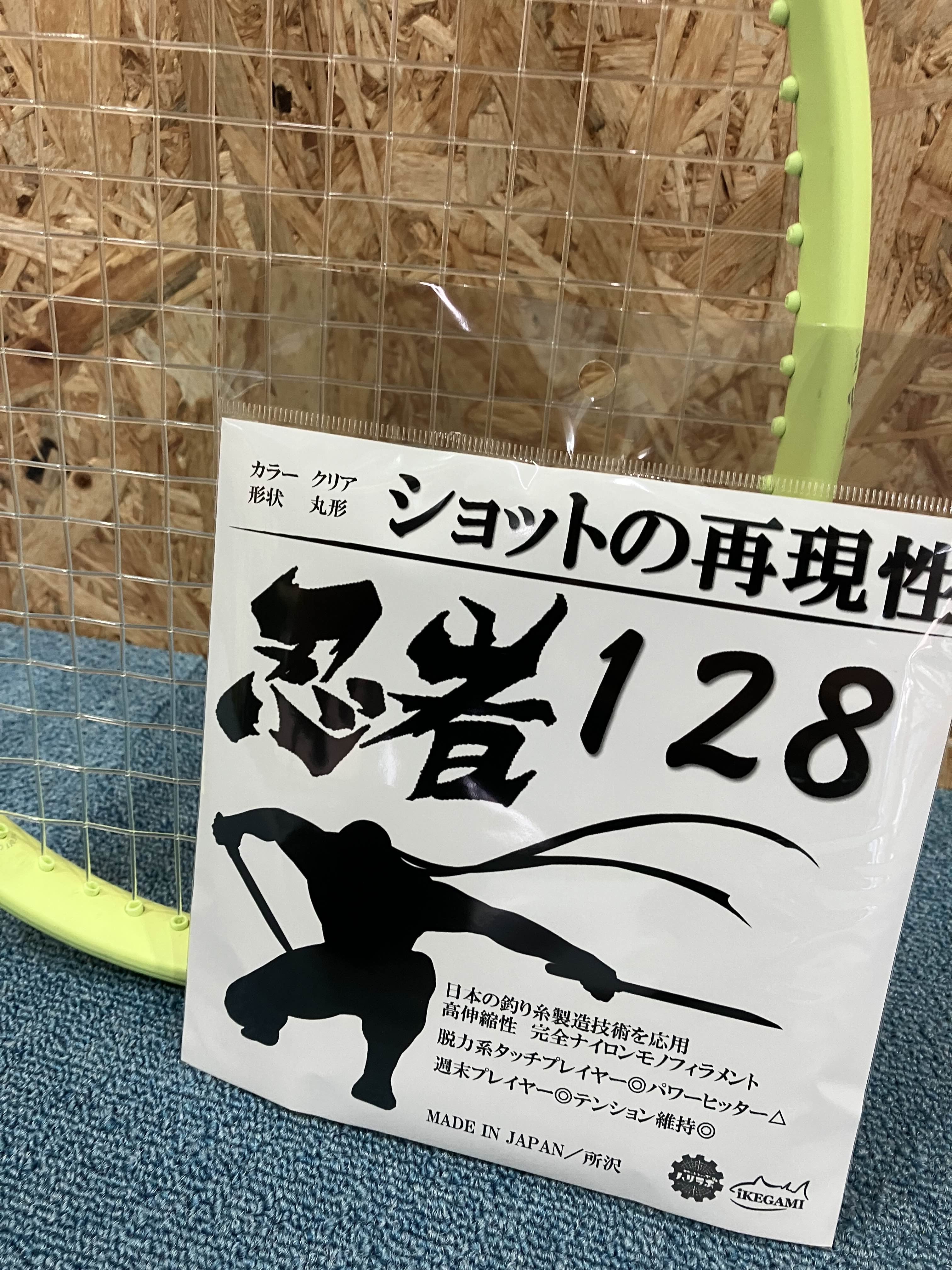 ナイロンの軽やかな飛び感と高伸縮性を兼ね備えた「忍者128ソフト」は、球持ち感の高さが特長です。